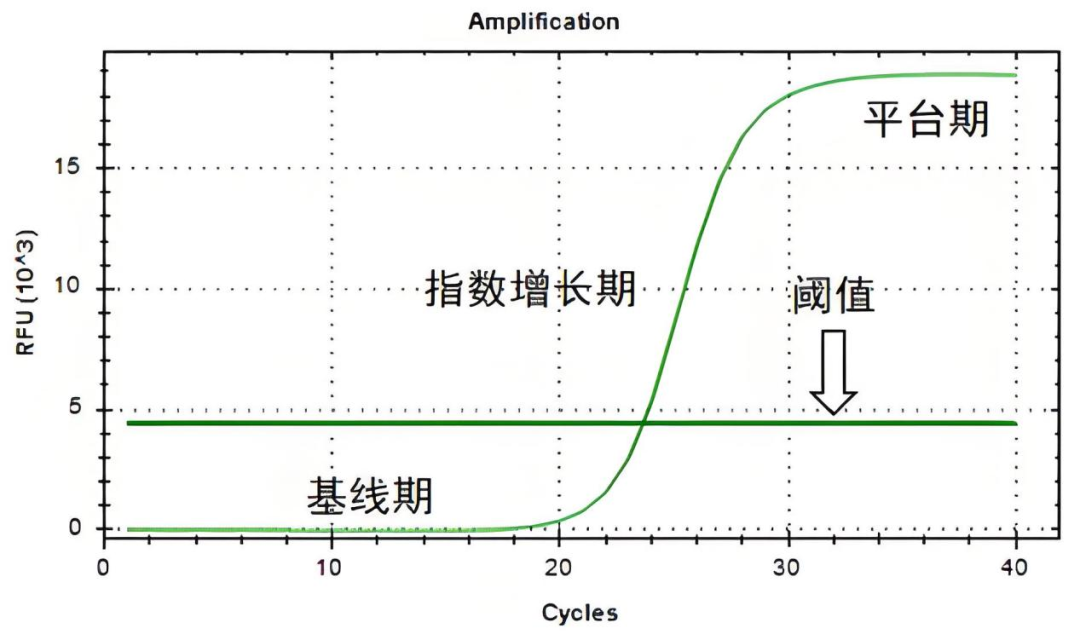 通常为反应开始后的前3至15个循环。此阶段,扩增产物量较少,荧光信号强度尚未超过仪器背景水平,因此无法检测到到有效的荧光信号变化。